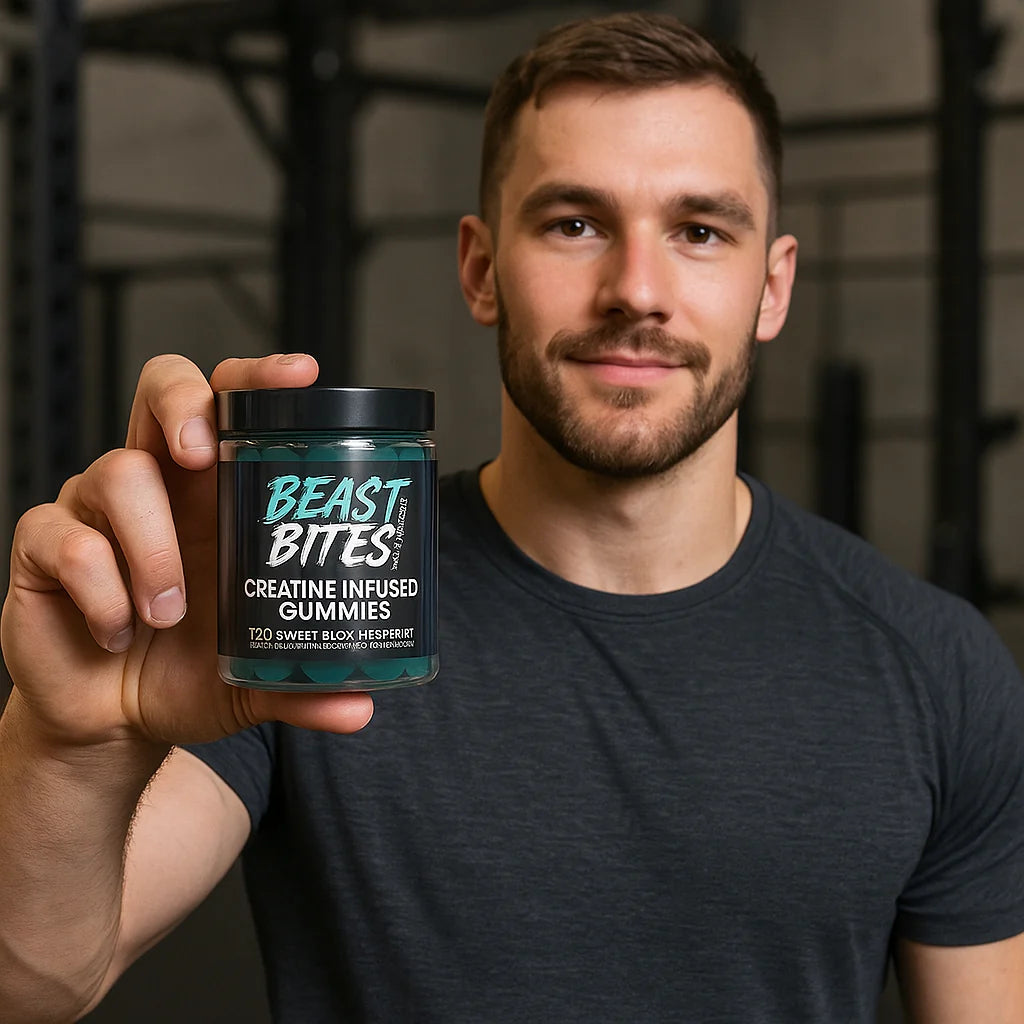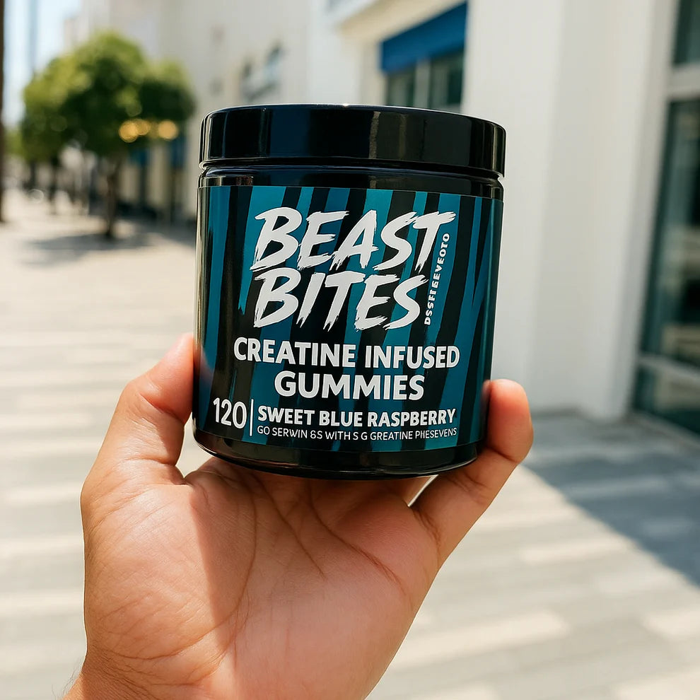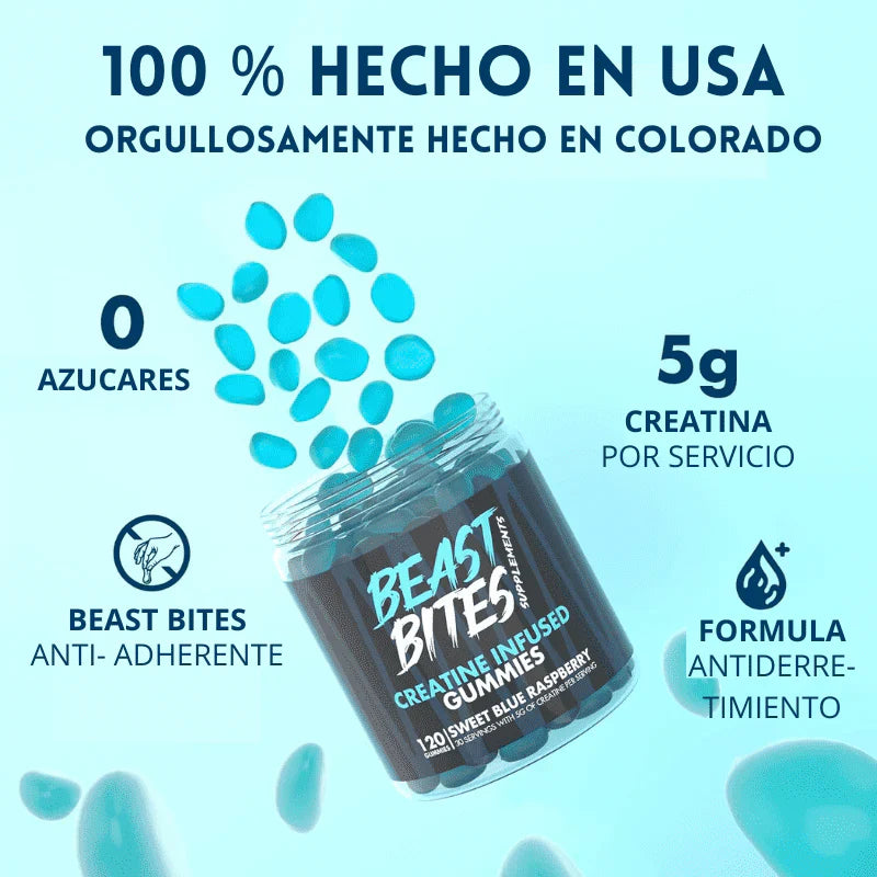 Beast Bites es creatina reinventada: práctica, sabrosa y sin complicaciones. Cada gomita contiene 1g de creatina monohidratada, y se recomienda tomar entre 3 y 5 gomitas al día para potenciar tu fuerza, rendimiento y recuperación.